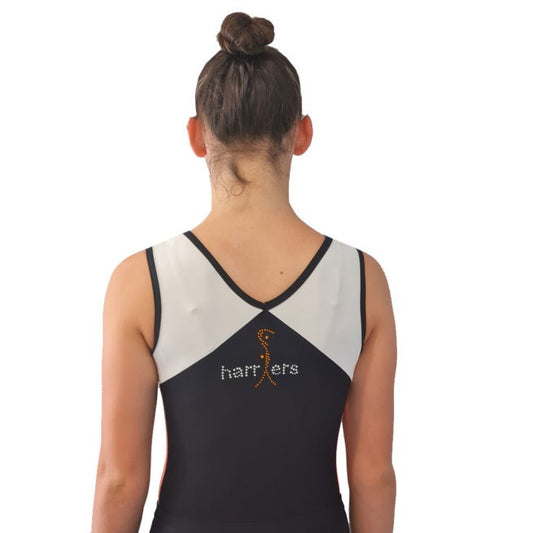 HALO SPARKS - Girls Black lycra leotard with club print and diamante