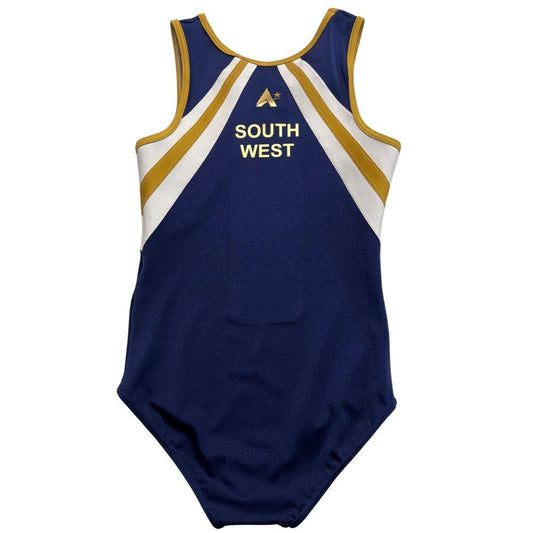 SOUTH WEST - Boys Navy Shiny Lycra Leotard with Gold and White details