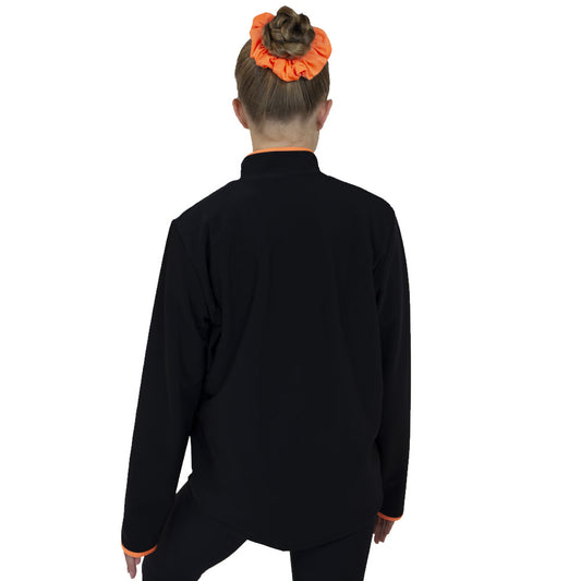 TS6HM01-M55 - Girls Half Zip Black Tracksuit Jacket with Orange collar and piping