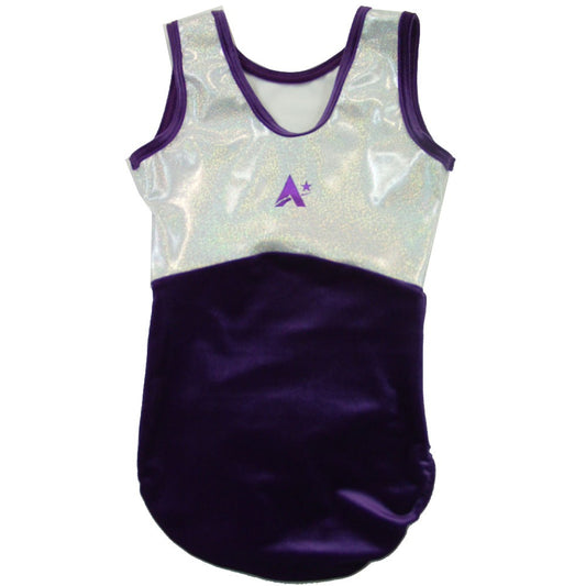 Valdez - Purple Velour and Silver Holo leotard with Printed Logo and Printed Name