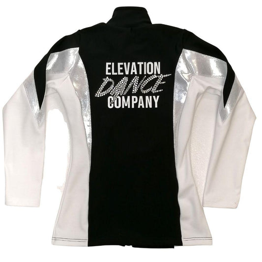 ELEVATION DANCE - Girls tracksuit jacket in Black and White microtex with Silver detail + diamante
