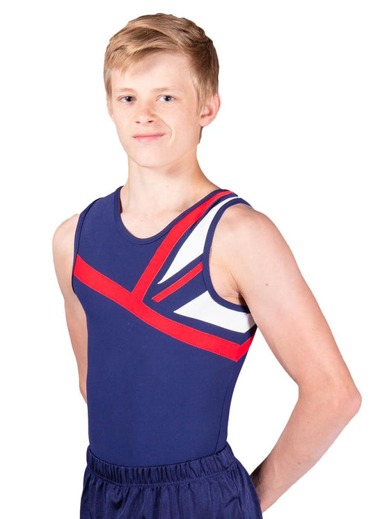 Sleeveless Leotard in Navy, Red and White Matt