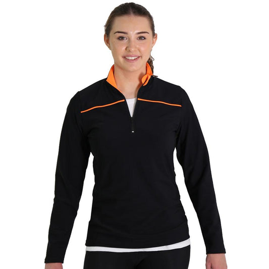 TS6HM01-M55 - Girls Half Zip Black Tracksuit Jacket with Orange collar and piping