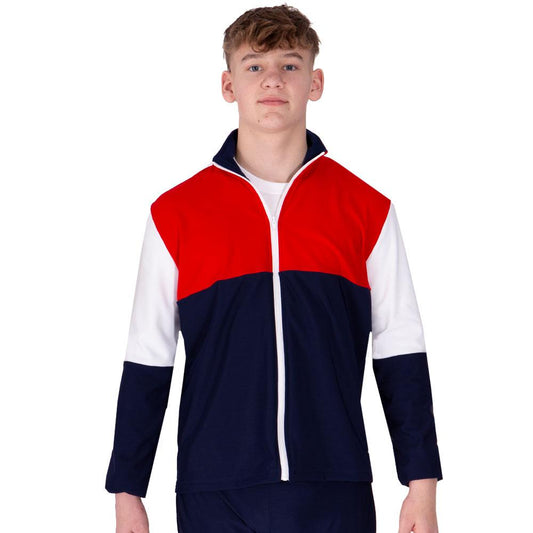 TS12M02-M61 - Navy Zipped Jacket with White contrast panel and Red foil detail