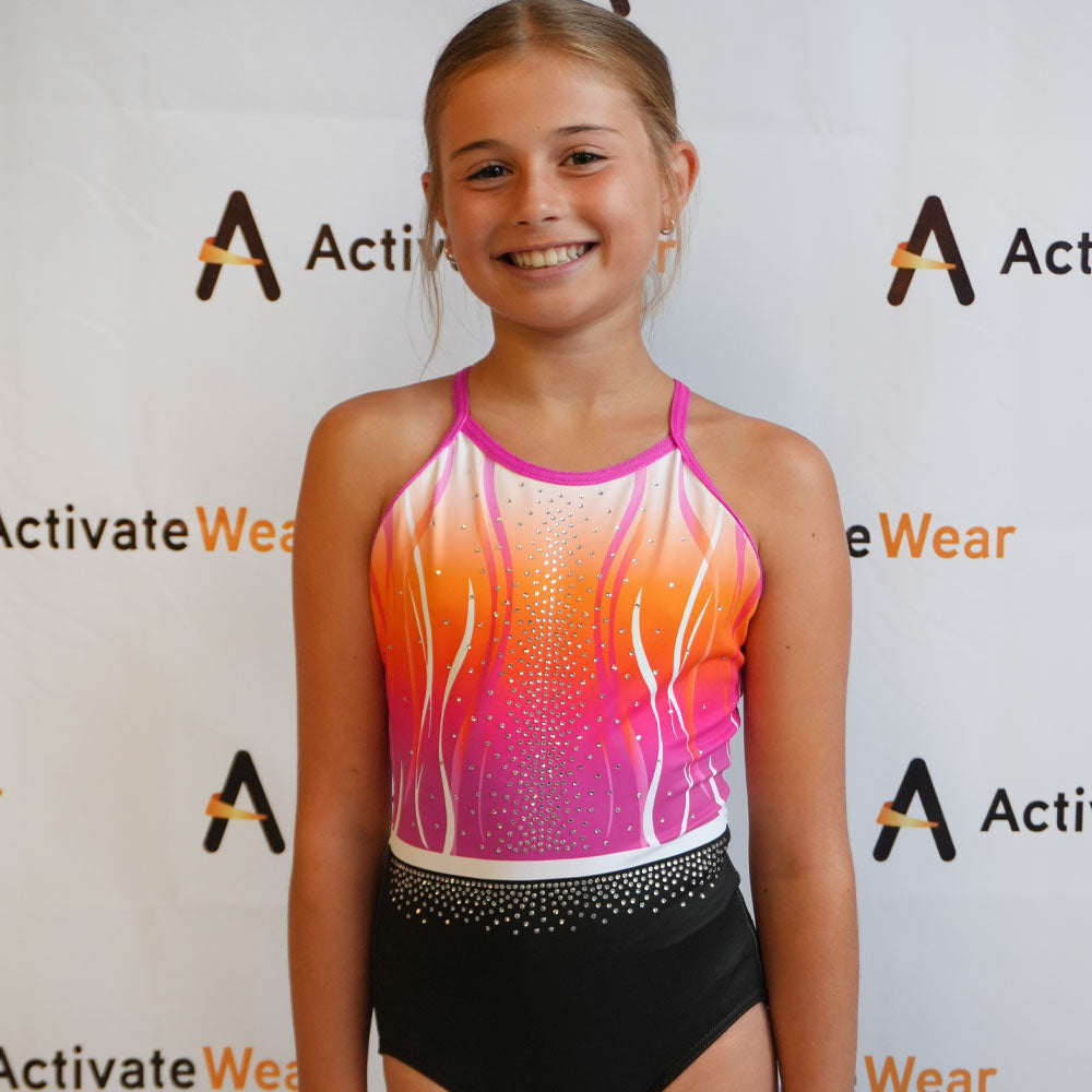 Bring a spark of magic to training with the Ember leotard. A sleek black base flows into a glowing ombré flame design, scattered with shimmering diamante for the perfect touch of sparkle. The delicate thin straps create a graceful silhouette, making Ember as stylish as it is comfortable.
