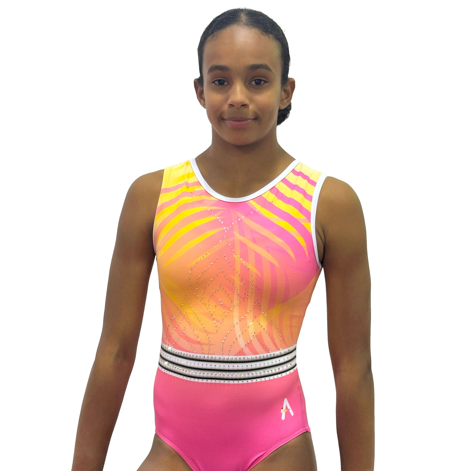 Step into paradise with this stunning leotard, designed for gymnasts who love to stand out! The Paradise Leotard is made from soft Lycra, ensuring ultimate comfort and flexibility for every move. The vibrant pink and coral hues are complemented by a sleek black and white waistband, creating a bold and stylish contrast.